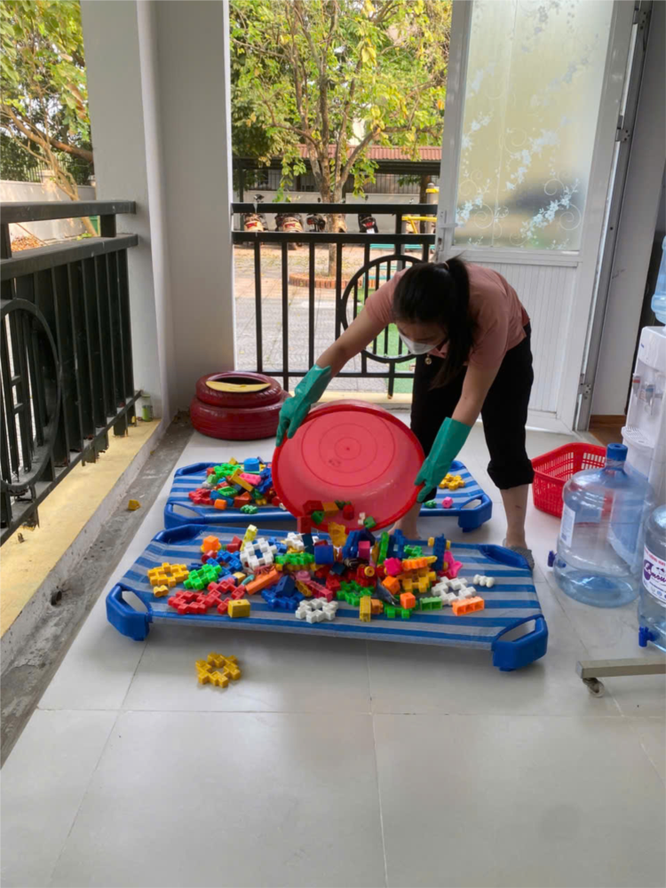 - Đồ chơi nhựa, gỗ được lau rửa sạch sẽ; đồ chơi vải được giặt và phơi khô.