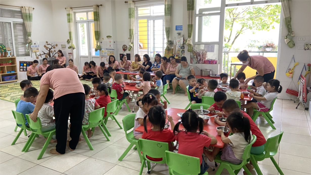 Chế độ ăn của trẻ mầm non chiếm 60-70% nhu cầu khuyến nghị năng lượng cả ngày của trẻ. Vì vậy, tổ chức bữa ăn cho trẻ là một hoạt động rất quan trọng trong các thời điểm sinh hoạt hằng ngày. Một bữa ăn được sắp xếp khoa học, đầy đủ chất dinh dưỡng không những giúp cho trẻ có đủ năng lượng cho một ngày học tập và vui chơi mà nó còn được xem là “chiếc chìa khoá vàng” cho sự phát triển toàn diện cả về thể chất lẫn tinh thần cho trẻ. Thông qua bữa ăn trưa, trẻ được bù đắp những năng lượng đã bị tiêu hao và cung cấp năng lượng mới để tham gia vào các hoạt động tiếp theo. Vì vậy việc tổ chức bữa ăn cho trẻ ở trường mầm non là một trong những nhiệm vụ quan trọng trong quá trình chăm sóc - nuôi dưỡng - giáo dục trẻ.