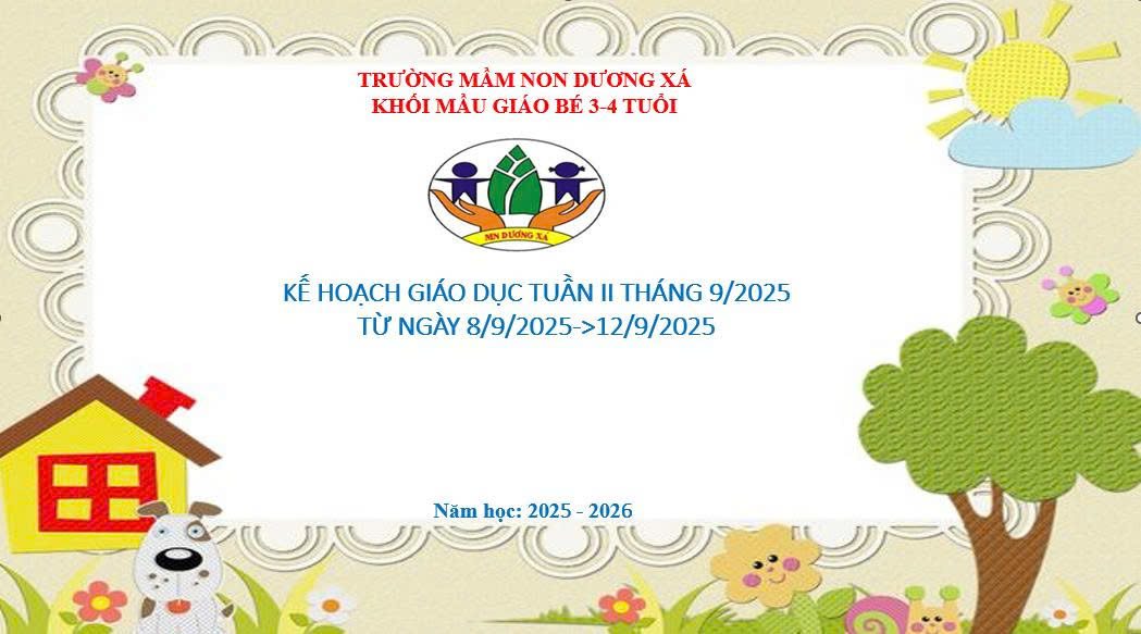 🌻 Kính mời bố mẹ cùng theo dõi Kế hoạch giáo dục tuần 2 tháng 9/2025 của khối mẫu giáo bé 3-4 tuổi. Thời gian thực hiện từ ngày 8/9 – 12/9/2025 để đồng hành và chia sẻ những khoảnh khắc đáng nhớ trong hành trình học tập nhé! ❣