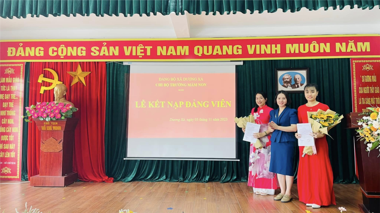 Ngày 03/11/2023, Chi bộ Trường mầm non Dương Xá đã tổ chức lễ kết nạp đảng viên mới cho quần chúng ưu tú Đặng Hải Yến và Bùi Thị Thu Trang