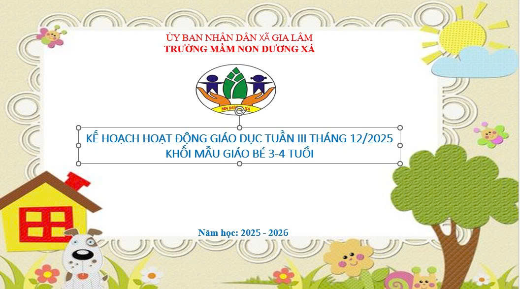 🌸🏫 KẾ HOẠCH GIÁO DỤC KHỐI MẪU GIÁO BÉ, TUẦN 3 THÁNG 12 NĂM HỌC 2025-2026