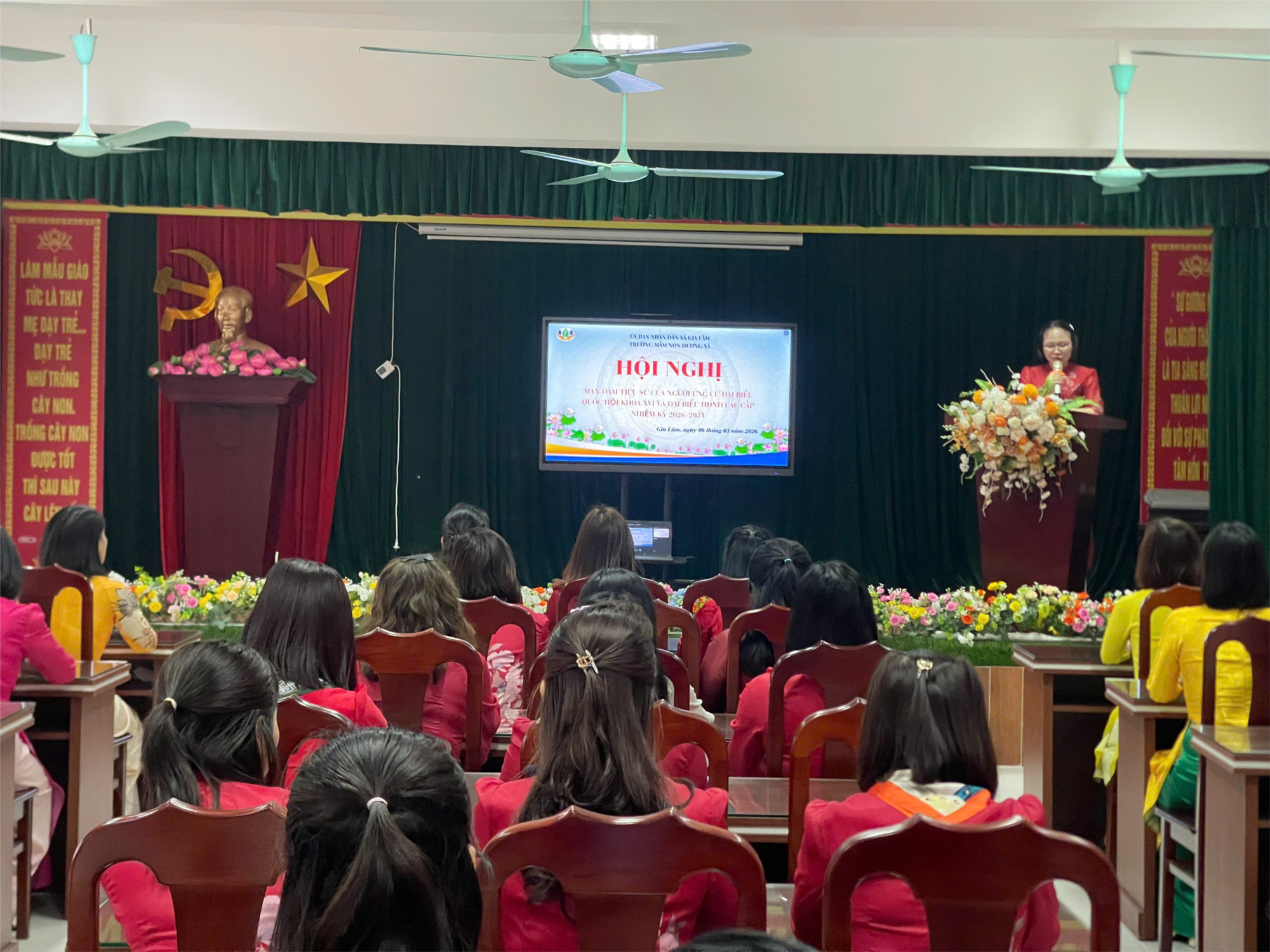 Thực hiện các bước trong công tác chuẩn bị cho cuộc bầu cử Đại biểu Quốc hội khóa XVI và Đại biểu Hội đồng nhân dân các cấp nhiệm kỳ 2026 – 2031, Trường Mầm non Dương Xá đã tổ chức buổi mạn đàm tiểu sử của người ứng cử với sự tham gia của toàn thể cán bộ, giáo viên, nhân viên trong nhà trường.