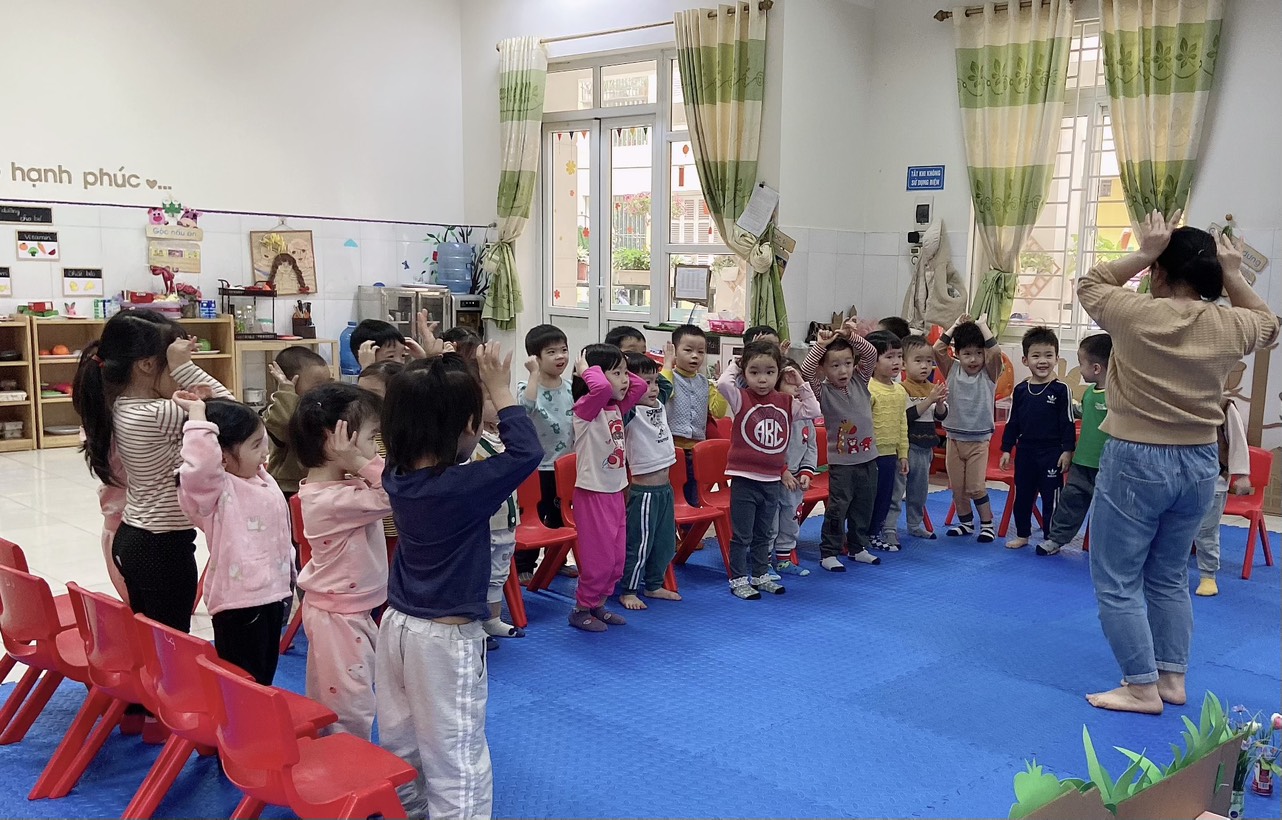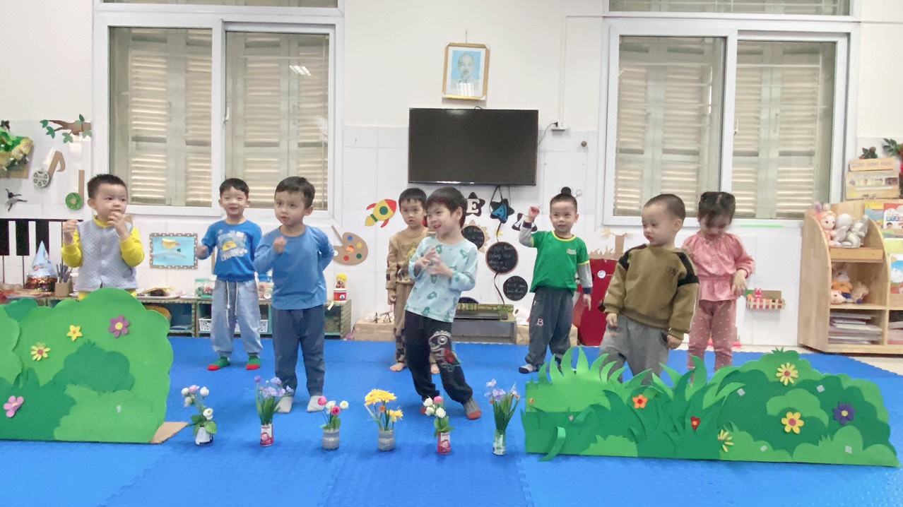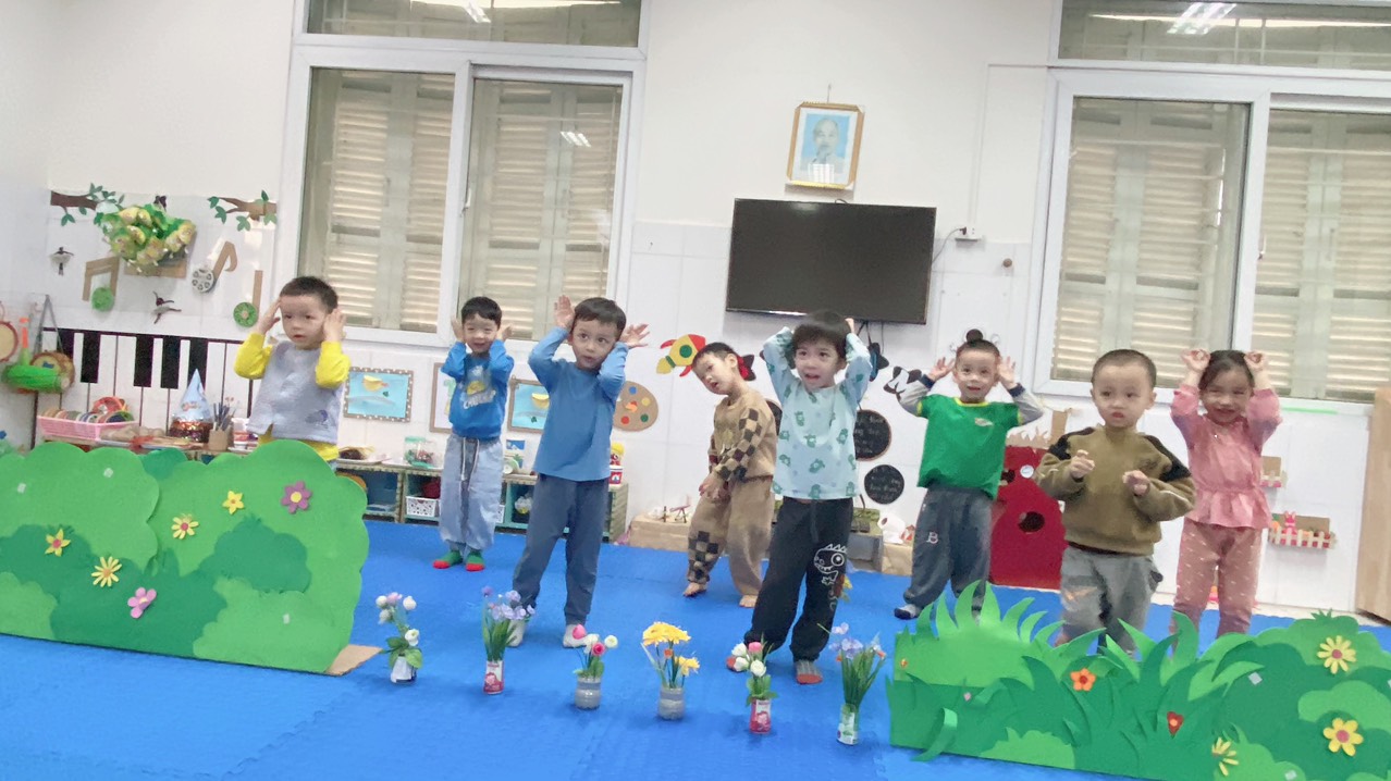 Dưới đây là một số hình ảnh của các bạn nhỏ lớp mẫu giáo bé C4 trong hoạt động âm nhạc: vận động minh họa "Đố bạn":
