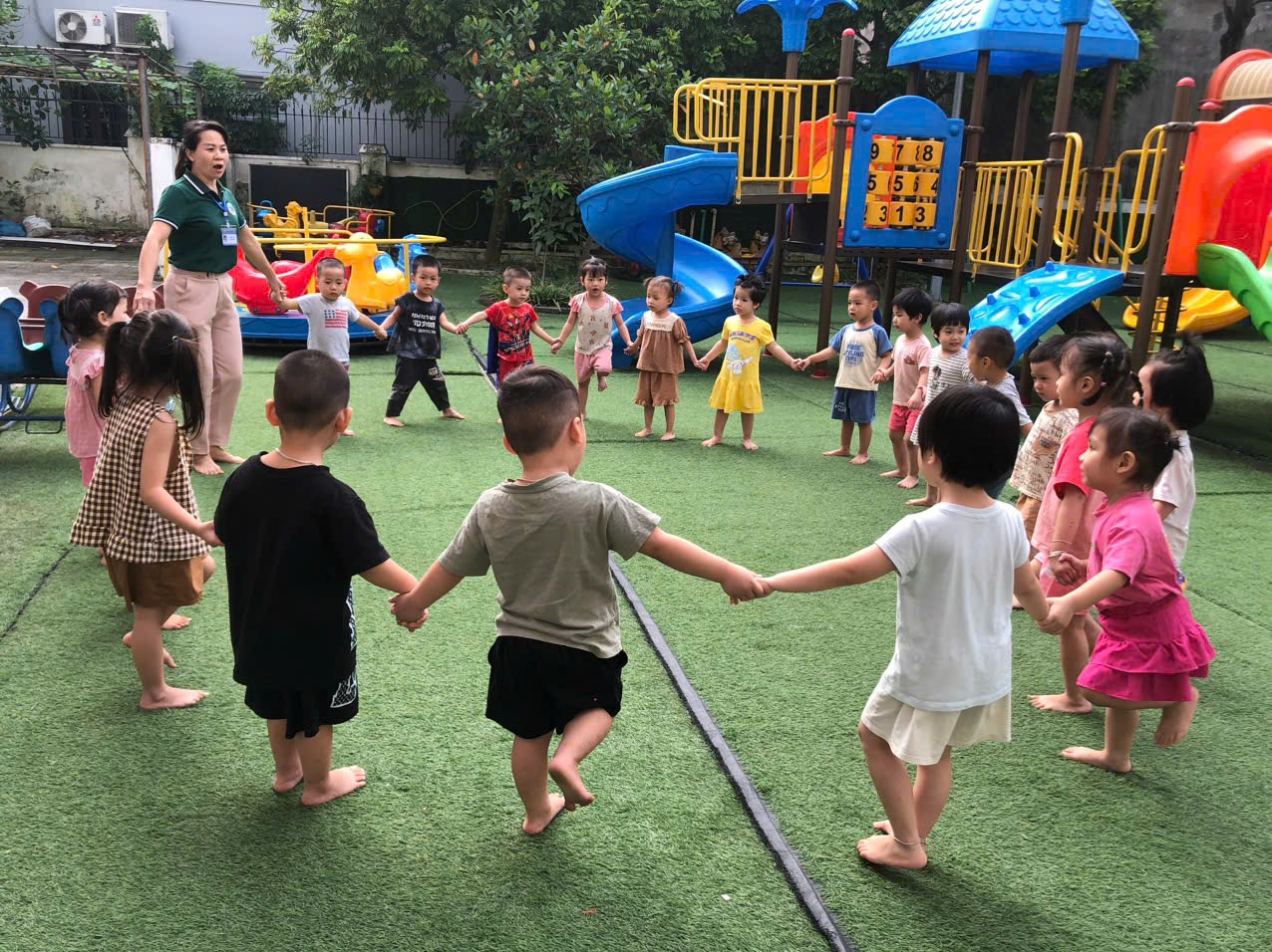 Từ những lợi ích và vai trò quan trọng của các hoạt động ngoài trời, trường Mầm non Dương Xá luôn chú trọng đầu tư và xây dựng môi trường hoạt động ngoài trời, hấp dẫn, bổ ích và thú vị để các bé luôn được vui học và phát triển toàn diện.