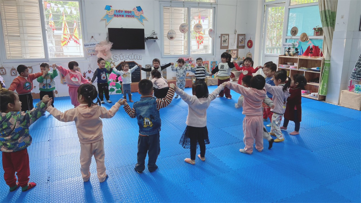 Ngoài giờ học, chúng con còn được chơi những trò chơi dân gian rất vui và bổ ích đấy bố mẹ ạ! Dưới đây là những hình ảnh khi tham gia trò chơi “Mèo đuổi chuột” của các con khối mẫu giáo bé 3-4 tuổi. Bố mẹ cùng theo dõi những khoảnh khắc đáng yêu, vui vẻ của các con nhé!