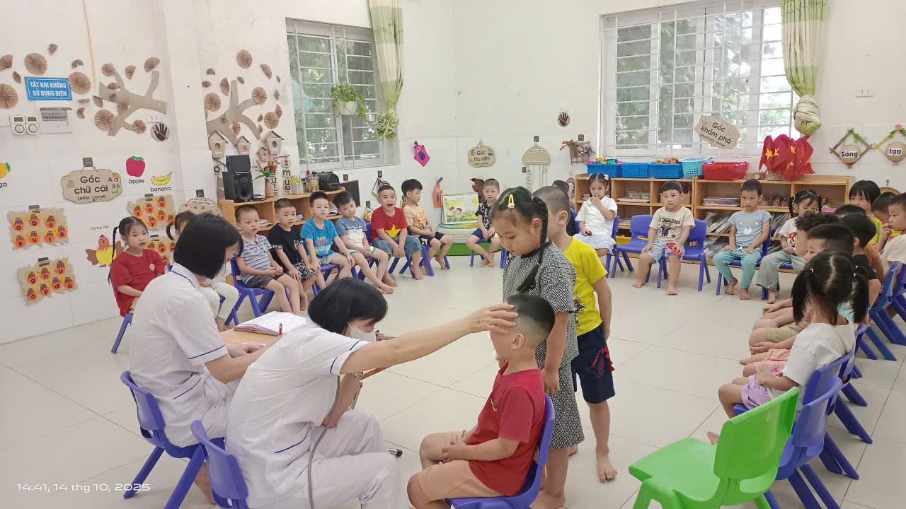 Thực hiện kế hoạch nhiệm vụ năm học 2025 – 2026, kế hoạch của tháng 10/2025. Ngày 14/10/ 2025 Trường Mầm non Dương Xá được đón Đoàn y tế xã về khám khám sức khỏe định kỳ cho 17/17 lớp đầu năm học 2025 - 2026. Nội dung khám, kiểm tra gồm: Cân nặng, chiều cao, khám tai, mắt, mũi, họng, kiểm tra tim phổi và một số bệnh liên quan đến đường hô hấp, da liễu ...