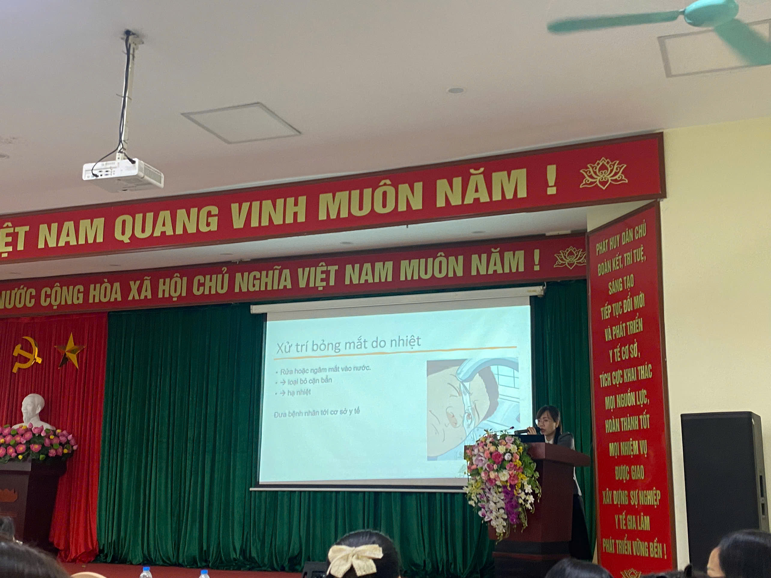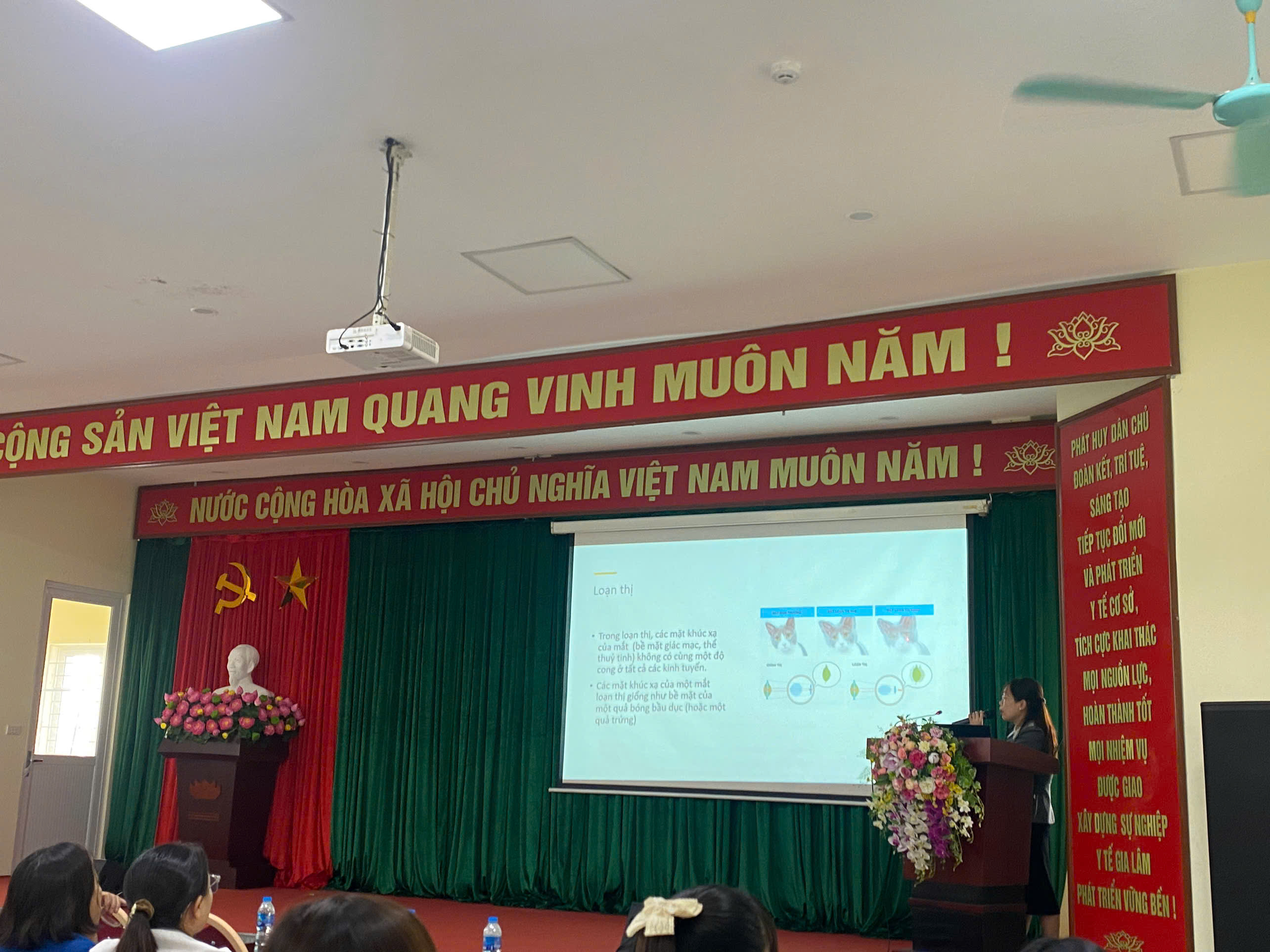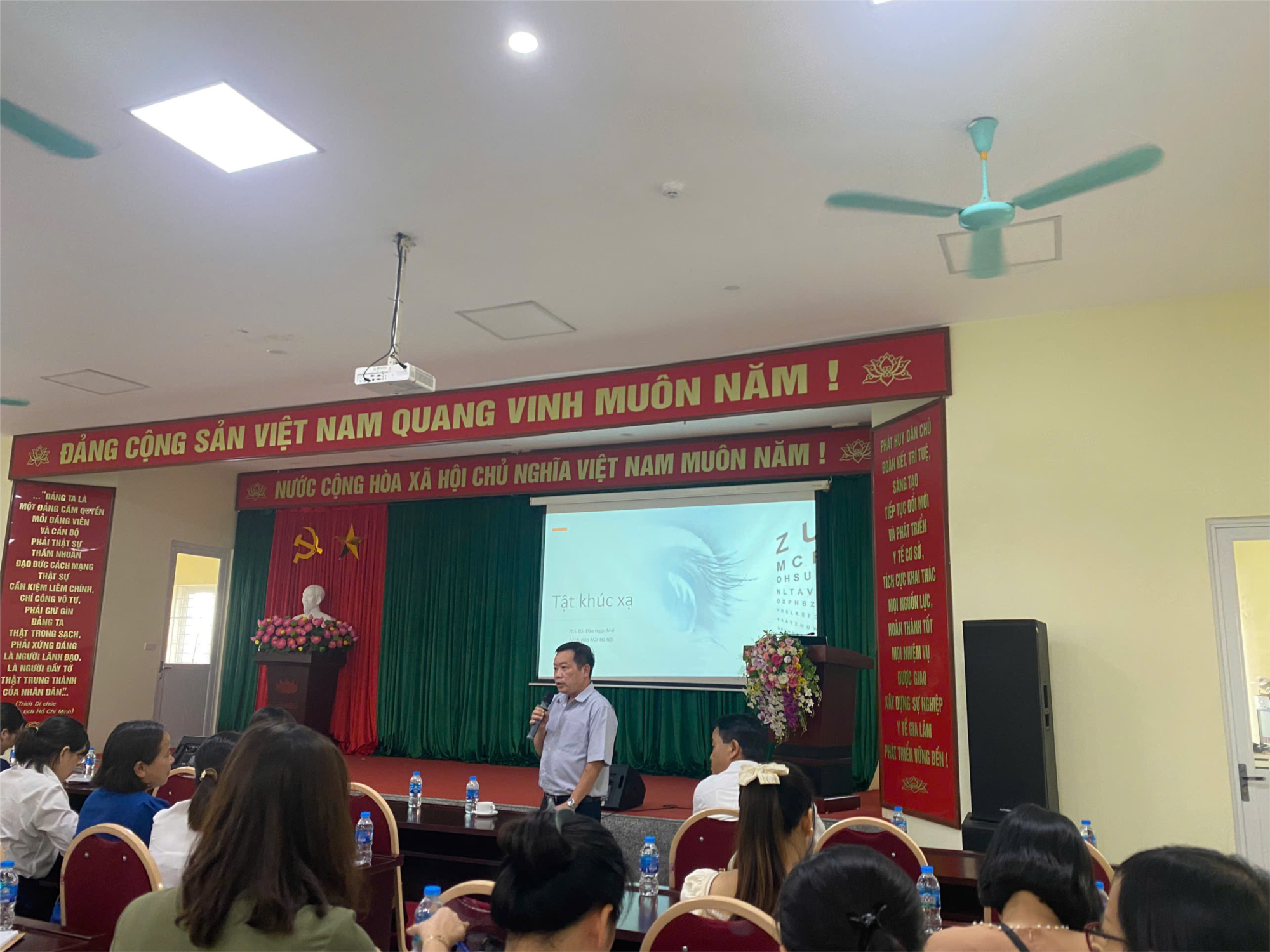 Tại buổi tập huấn, cán bộ quản lý và nhân viên đã được nghe Ths. bác sĩ Đào Ngọc Mai báo cáo các nội dung liên quan đến chương trình chăm sóc Mắt học đường; các bệnh về mắt, cách chăm sóc mắt, phòng và chống cận thị, đặc biệt là tật khúc xạ là một trong những nguyên nhân gây mờ mắt quan trọng nhất ở lứa tuổi học đường.