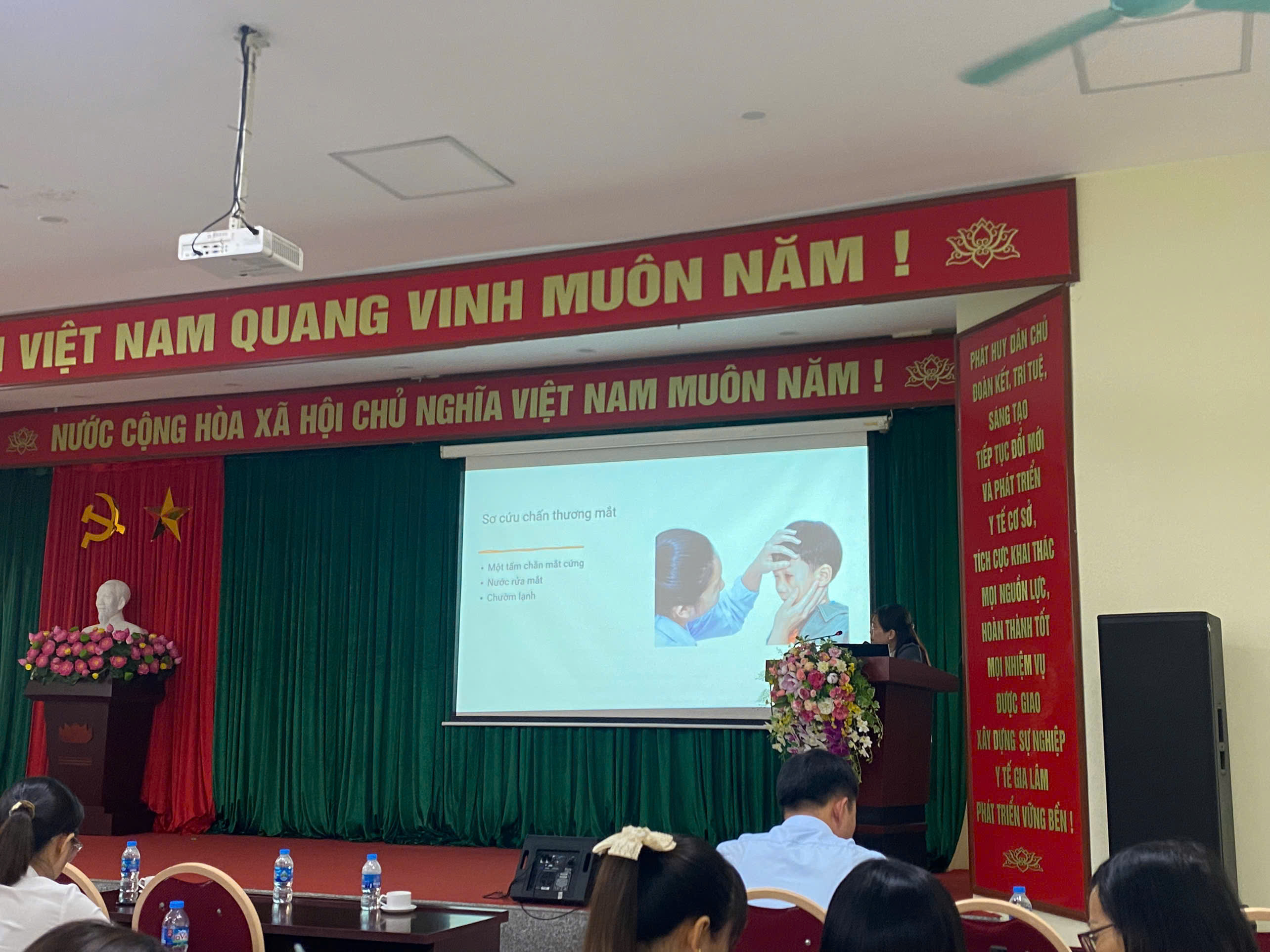 Thực hiện kế hoạch số 504/KHHĐ-MHĐ ngày 24/6/2024 của Bệnh viện mắt Hà Nội về hoạt động chương trình mắt học đường năm 2024, Trung tâm Y tế Gia Lâm phối hợp với bệnh viện mắt Hà Nội tổ chức tập huấn cho các bộ y tế học đường.