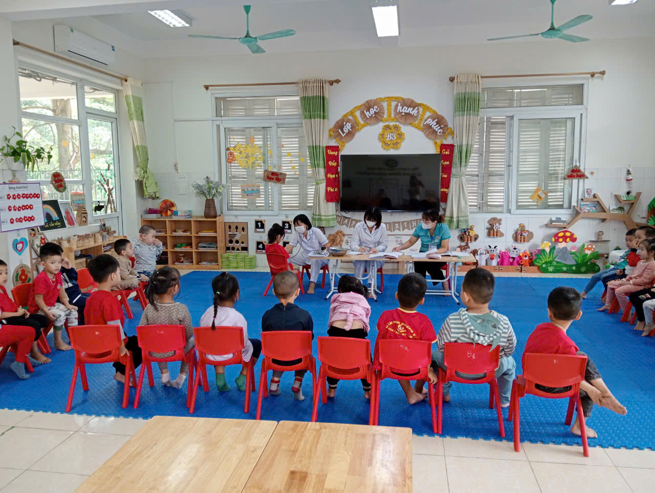 Để chuẩn bị công tác khám sức khỏe cho trẻ được tiến hành thuận lợi, BGH nhà trường đã chỉ đạo các nhóm lớp chuẩn bị đầy đủ các điều kiện cho các y bác sỹ làm việc: Hồ sơ sổ sách đầy đủ, chuẩn bị bàn ghế, nước ấm…. Đồng thời chỉ đạo giáo viên các nhóm lớp thông báo lịch khám tới 100% phụ huynh để đưa con đi khám đầy đủ. Việc khám sức khỏe cho trẻ mầm non không chỉ là nhiệm vụ của nhà trường mà còn là điều cần thiết cha mẹ nên lưu tâm để trẻ có sự phát triển toàn diện nhất.
