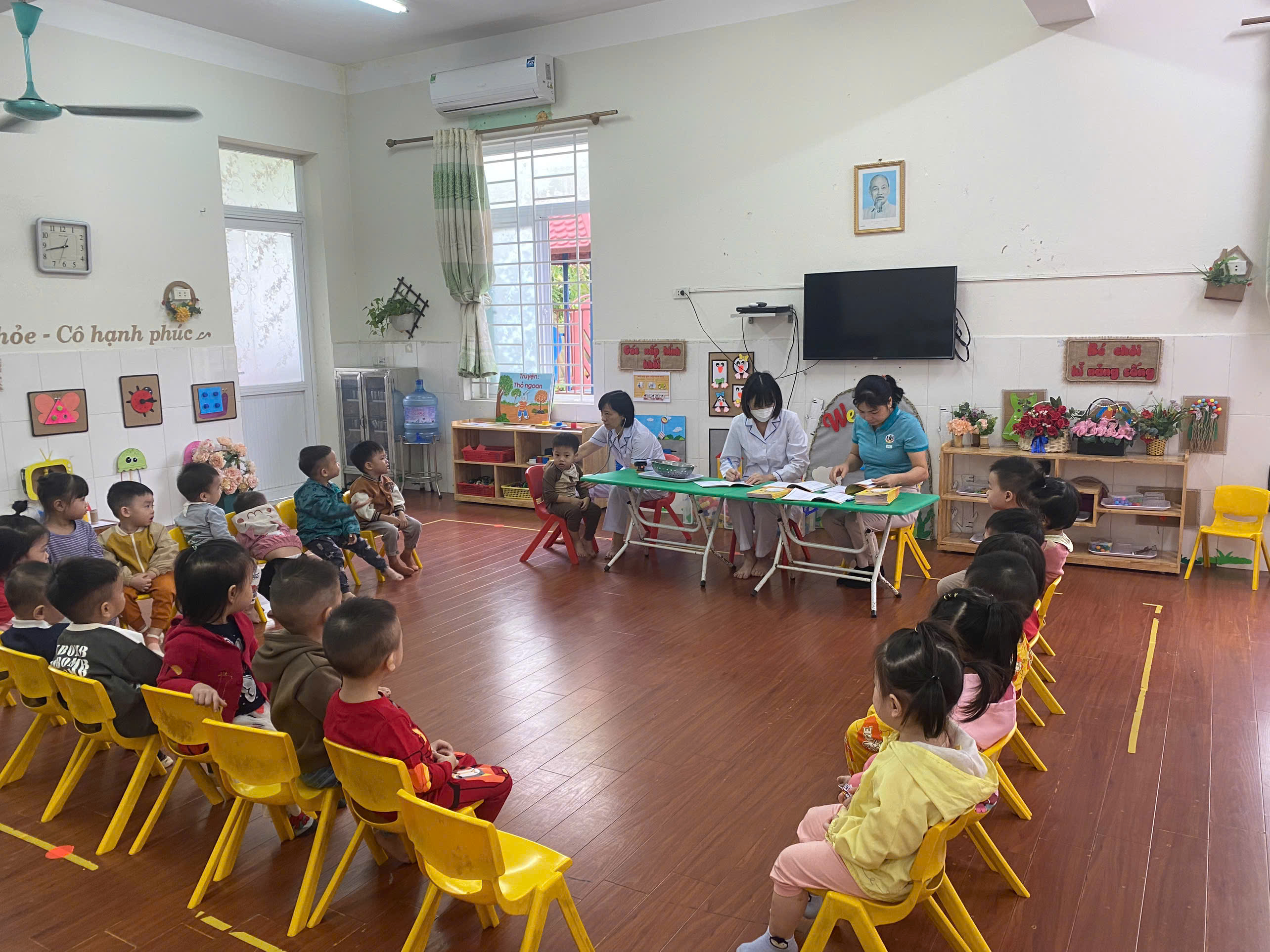 Thực hiện kế hoạch năm học 2024 -2025 và kế hoạch phối hợp thực hiện công tác y tế trường học năm học 2024 -2025 của trường Mầm non Dương xá. Sáng ngày 28/10/2024 trường Mầm non Dương Xá phối hợp với Trạm y tế xã Dương Xá tổ chức khám sức khỏe định kỳ cho 100% học sinh toàn trường. Các nội dung kiểm tra sức khỏe gồm: khám Mắt, Tai- Mũi- Họng, Răng -Hàm- Mặt, các chuyên khoa khác...