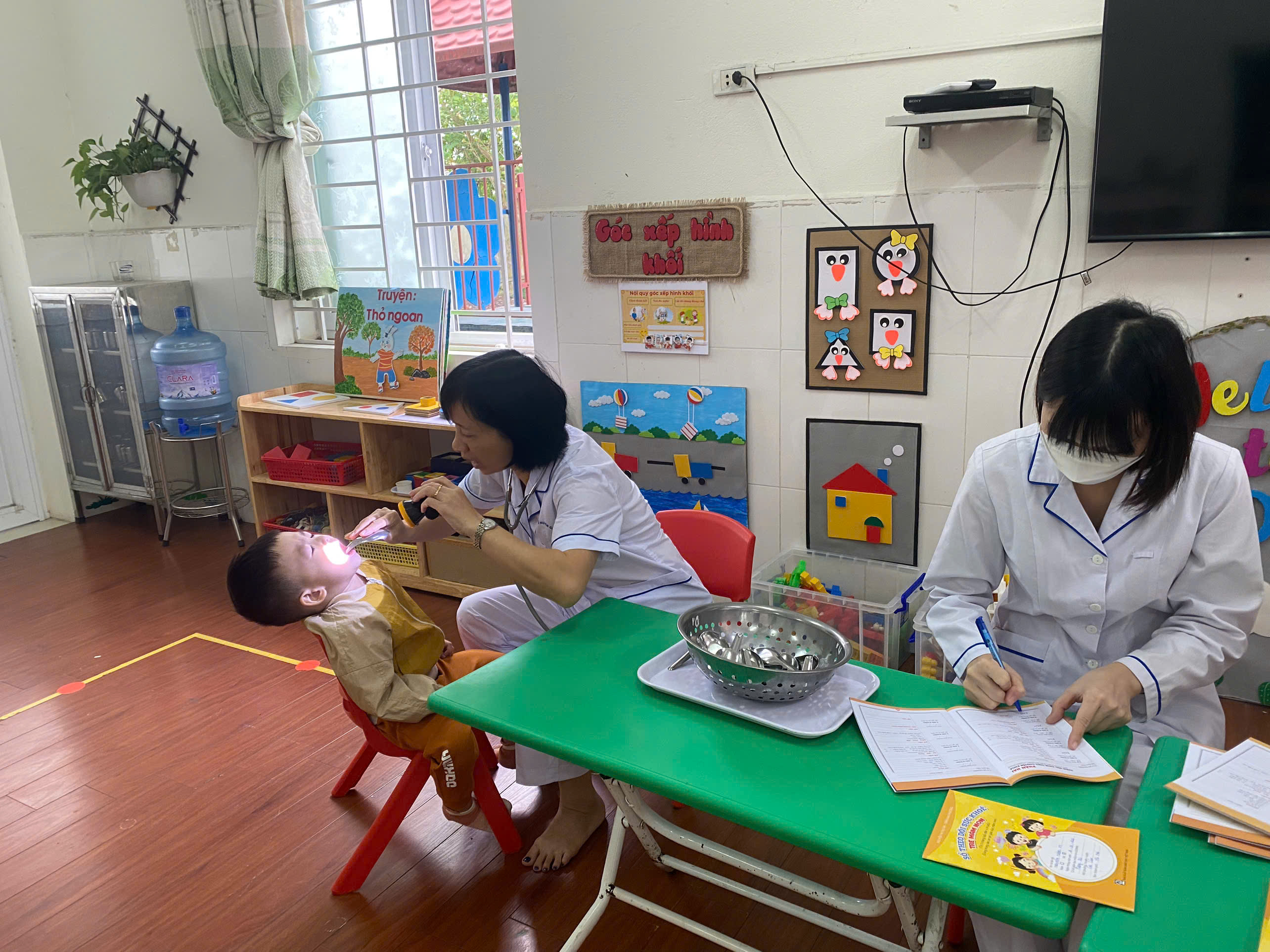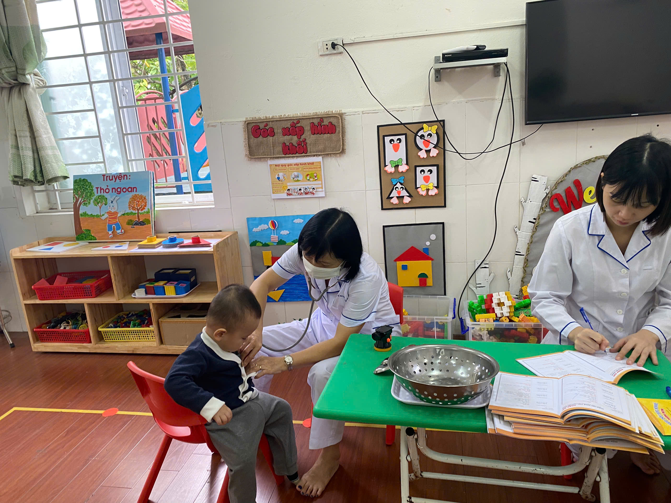 Sau một ngày làm việc nhiệt tình và trách nhiệm cao của y, Bác sỹ đã khám cho hơn 400 học sinh trong trường, trẻ đều có tâm lý vô cùng thoải mái, tự tin, hợp tác tốt với các bác sĩ trong quá trình khám sức khỏe. Qua đợt kiểm tra sức khỏe cho thấy đa số trẻ có thể lực tốt tuy nhiên bên cạnh đó có một số trẻ mắc bệnh thường gặp: sâu răng, viêm họng, …. Kết quả kiểm tra sức khoẻ của trẻ đã được cán bộ y tế cùng giáo viên phụ trách lớp phân loại sức khỏe và ghi chép cụ thể trong sổ theo dõi sức khỏe trẻ. Bác sĩ đã trao đổi, tư vấn với nhà trường để giáo viên các nhóm lớp thông báo trực tiếp với phụ huynh cùng phối hợp chăm sóc các con về chế độ dinh dưỡng, chế độ luyện tập, vệ sinh sao cho các em có một sức khỏe tốt nhất trong thời kỳ giao mùa.