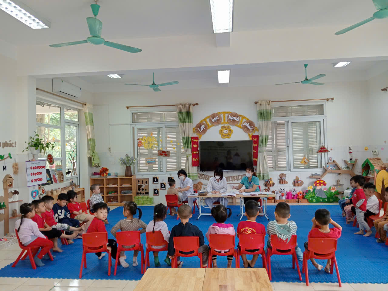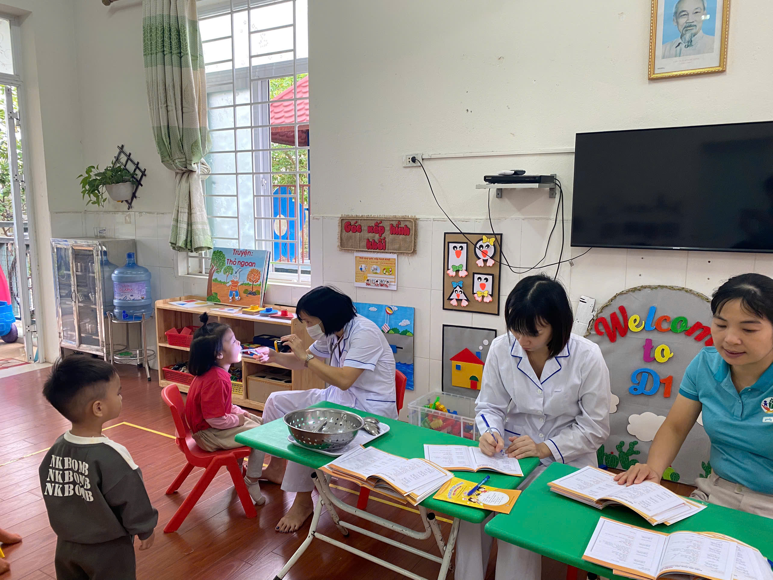 Dưới đây là một số hình ảnh của y bác sỹ và các bé trong buổi khám sức khỏe tại trường: