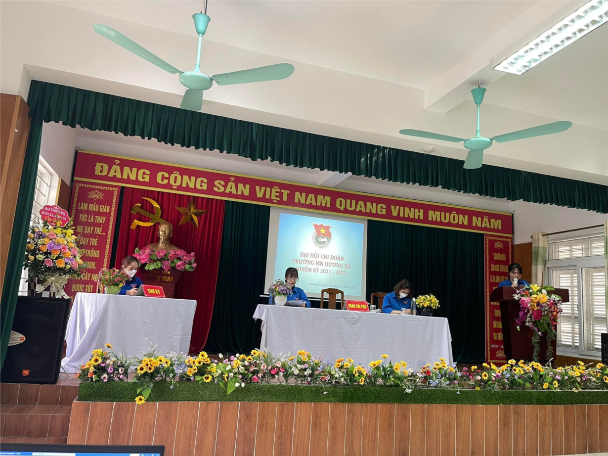 Sáng ngày 06 tháng 01 năm 2022, được sự đồng ý của BCH đoàn Xã Dương Xá, chi uỷ chi bộ trường mầm non Dương Xá, đại hội chi đoàn trường mầm non Dương Xá đã diễn ra thành công tốt đẹp. Đại hội bầu BCH chi đoàn, bí thư chi đoàn nhiệm kỳ 2021 - 2022 và đoàn đại biểu đi dự Đại hội đại biểu Đoàn TNCS Hồ Chí Minh xã Dương Xá lần thứ XXV nhiệm kỳ 2022 - 2027.