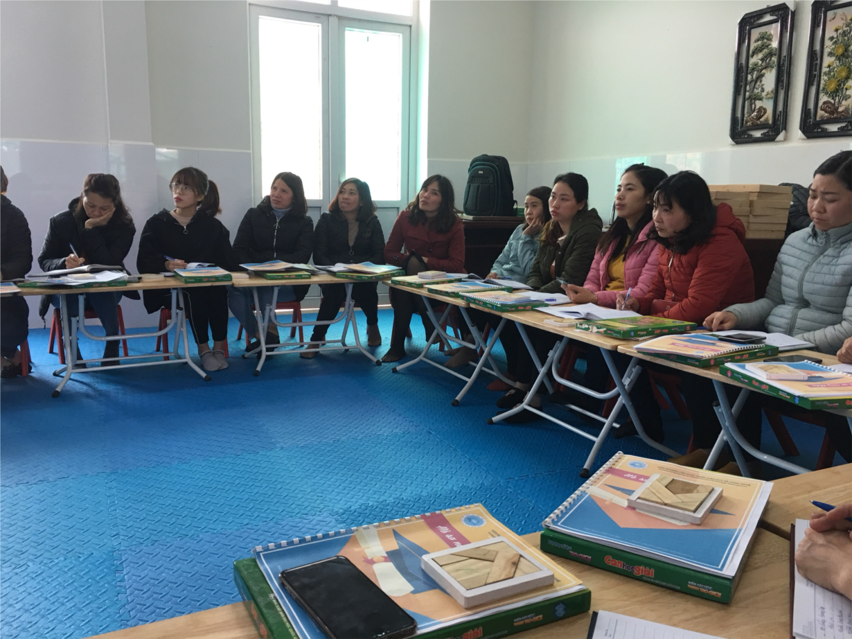 Qua buổi tập huấn đã giúp cho chính CBQL và giáo viên có cái nhìn tổng thể để hoàn thiện phát triển các ý tưởng : biết xây dựng môi trường, thiết kế và tổ chức các hoạt động ứng dụng phương pháp giáo dục Steam cho trẻ . Buổi tập huấn thật sự đã mang lại nhiều kiến thức mới và khơi gợi sự say mê, khả năng sáng tạo, lòng yêu nghề ham học hỏi của cán bộ - giáo viên trong nhà trường.