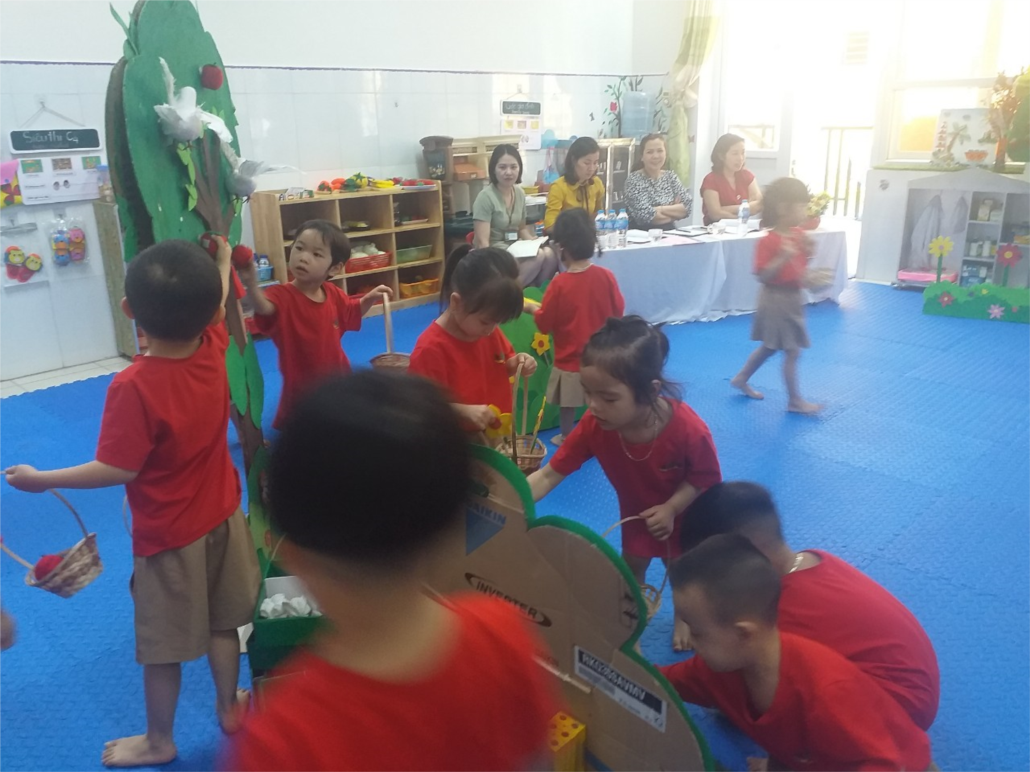 Các cô nhẹ nhàng, gần gũi trẻ, các hình thức tổ chức linh hoạt, sáng tạo phù hợp lứa tuổi, lấy trẻ làm trung tâm;
